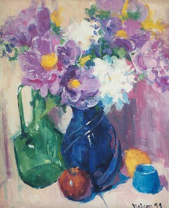 Peonies and Blue Glass