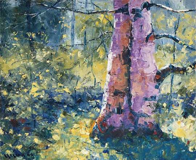 This is the birch tree in back of the house, painted in the afternoon in early spring. The leaves are just starting to come out and there is still a lot of sunlight filtering through. A photo of this painting appeared in the Ann Arbor News (Michigan) in July, 2000. -