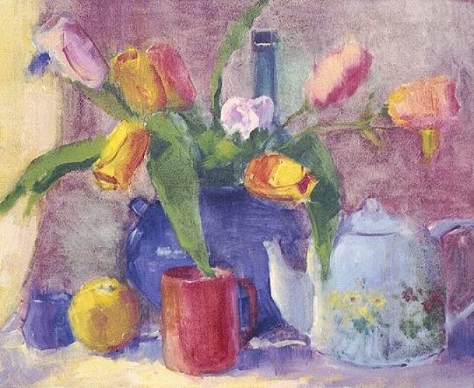 Still Life with Red Cup and Tulips