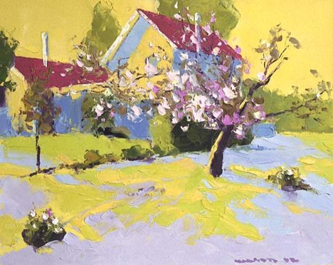 An experiment in color, using a more expressionist technique than I usually use. The painting is based on an earlier work done on location at a farm owned by friends. -