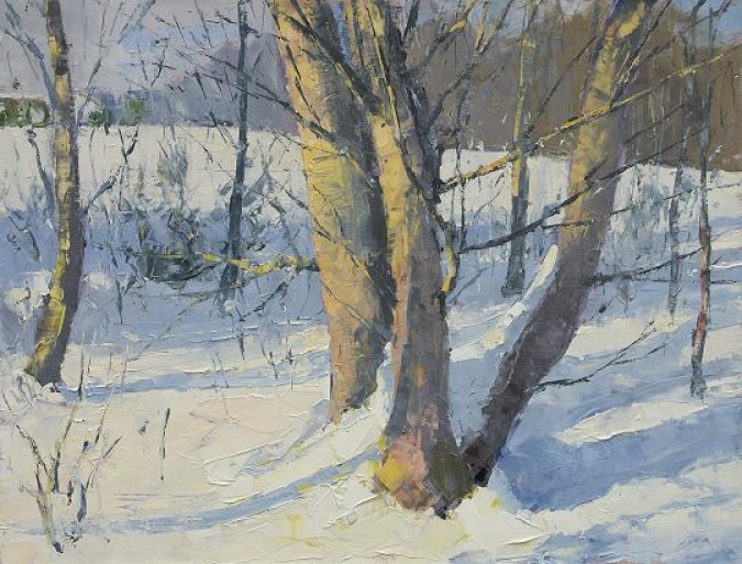 This painting site was quite far from where I had to park the car, a struggle in knee-deep snow. This tree is on private land where I often go painting and I've wondered many times how I could work it into a composition. It's sometimes a process of slowly realizing the potential in a subject, and recognizing there is always room for future changes and improvements.